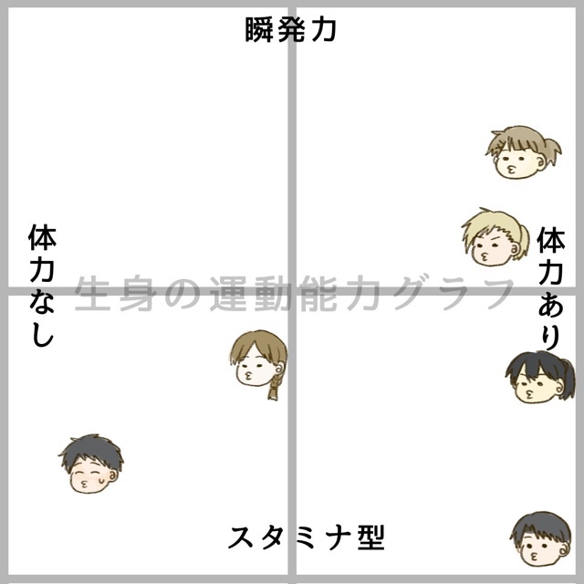 線を書くから安喜(茶髪ポニテ)、小豆畑(開眼黒髪)、マル(金髪ポニテ)、颯太(細目)。Stray Sheepから名取(黒髪ポニテ)と豊橋(茶髪おさげ)で配置してみたゾ